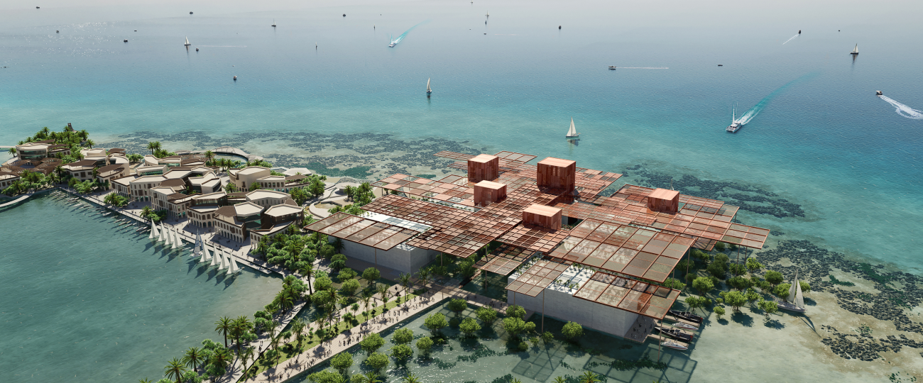 ومن جهة أخرى، يمتد مشروع وسط جدة على مساحة 5.7 مليون متر مربع، ويحتوي على واجهة بحرية تمتد بطول 9.5 كم وشاطئ رملي بطول 2.1 كم، ويضم أربعة معالم رئيسية معمارية. أما بالنسبة لهوية التصاميم المعمارية فهي مستوحاة من تاريخ وفن عمارة مدينة جدة بأسلوب حديث ومعاصر والذي يجعل من هذا المشروع وجهة فريدة من نوعها.